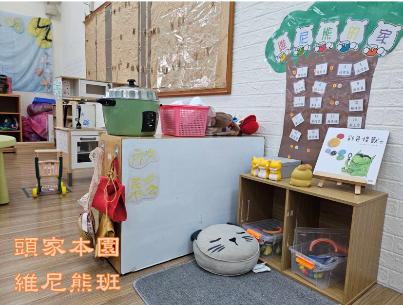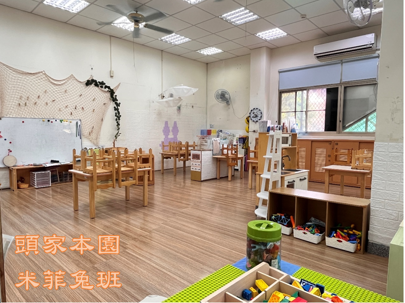 頭家本園有三到五歲混齡班-米菲兔班與維尼熊班。溫馨的教室、調配營養均衡的餐點 、經驗豐富的師資、寬廣的園區及安全的遊樂設施,提供幼兒足夠的活動空間。角落學習區教學,重視孩子適性的發展。